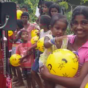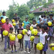 Wo immer wir mit den gelben Spielbällen hinkamen, die Freude war riesengross – nicht nur bei den Kindern und deren Eltern, sondern auch bei den Helfern, die nach dem Verteilen der Bälle mit den Kindern spielten!“