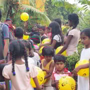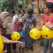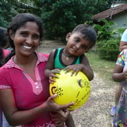 „Während meines Freiwilligeneinsatzes beim Meeresschildkröten- Projekt Kosgoda Sea Turtle Conservation in Sri Lanka verteilte ich 130 Spielbälle. Dank der grossen Hilfe der Freiwilligen und des Personals der Meeresschildkröten-Station konnten wir Kindern in Kosgoda und Umgebung die gelben Bälle schenken. 100 Bälle brachten wir ins Unesco Village und ins Aurora Village, zwei Siedlungen, die nach der Tsunami Katastrophe im Jahr 2004 gebaut wurden. Die restlichen Bälle verteilte ich in einem abgelegenen Dorf, wohin mich ein einheimischer Tuktuk-Fahrer fuhr.