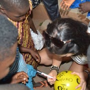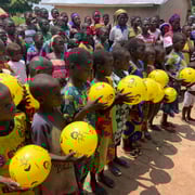 "Es ist jedes Mal eine riesengrosse Freude, wenn wir Kindern in Togo einen myball übergeben dürfen. Ihr Lächeln und ihre Freude an den Bällen macht uns ebenso glücklich. Das Schönste ist, wenn wir beobachten können, wie die Kinder mit den Bällen miteinander spielen."
