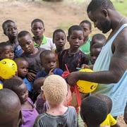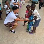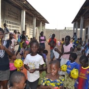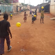 "Das Flüchtlingscamp in Lomé bietet aktuell Zuflucht für rund 1300 Menschen. Die Personen sind meist von der Elfenbeinküste geflüchtet. Wir haben dem Flüchtlingscamp Kinderkleider gespendet und aufblasbare Bälle von myball.ch verteilt. Zudem besuchten wir die Grundschule Ma Percée, am Rande der Hauptstadt Lomé. Den Kindern haben wir Bälle von myball.ch mitgebracht. Es ist bemerkenswert, wie viel Freude die Kinder über einen kleinen gelben Ball zum Ausdruck bringen können."