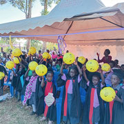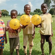 "Die Waisenkinder in Uganda waren sehr glücklich einen Ball zu erhalten! Am Abend nahm jedes seinen Ball sogar mit ins Bett. Herzlichen Dank!"